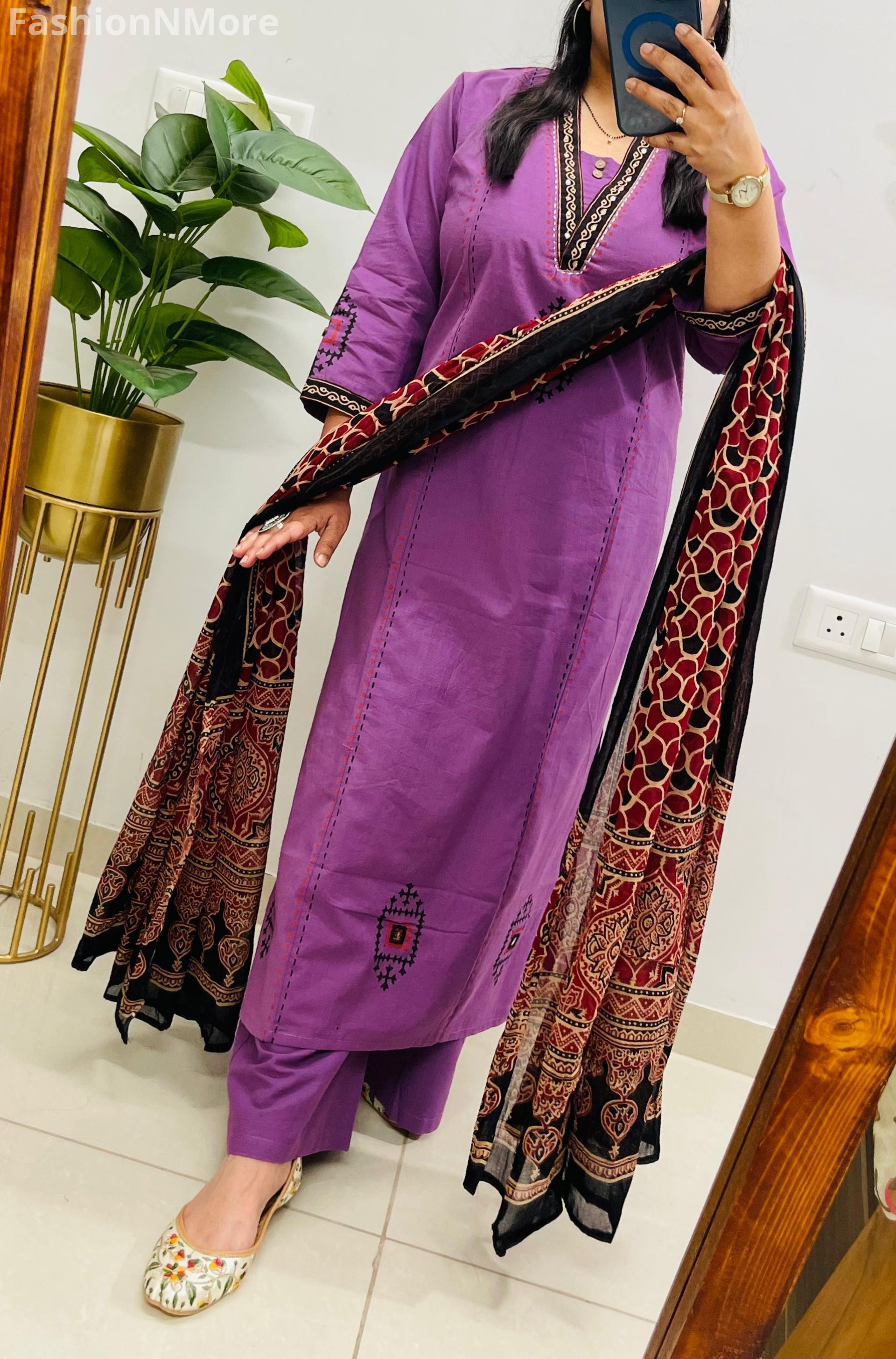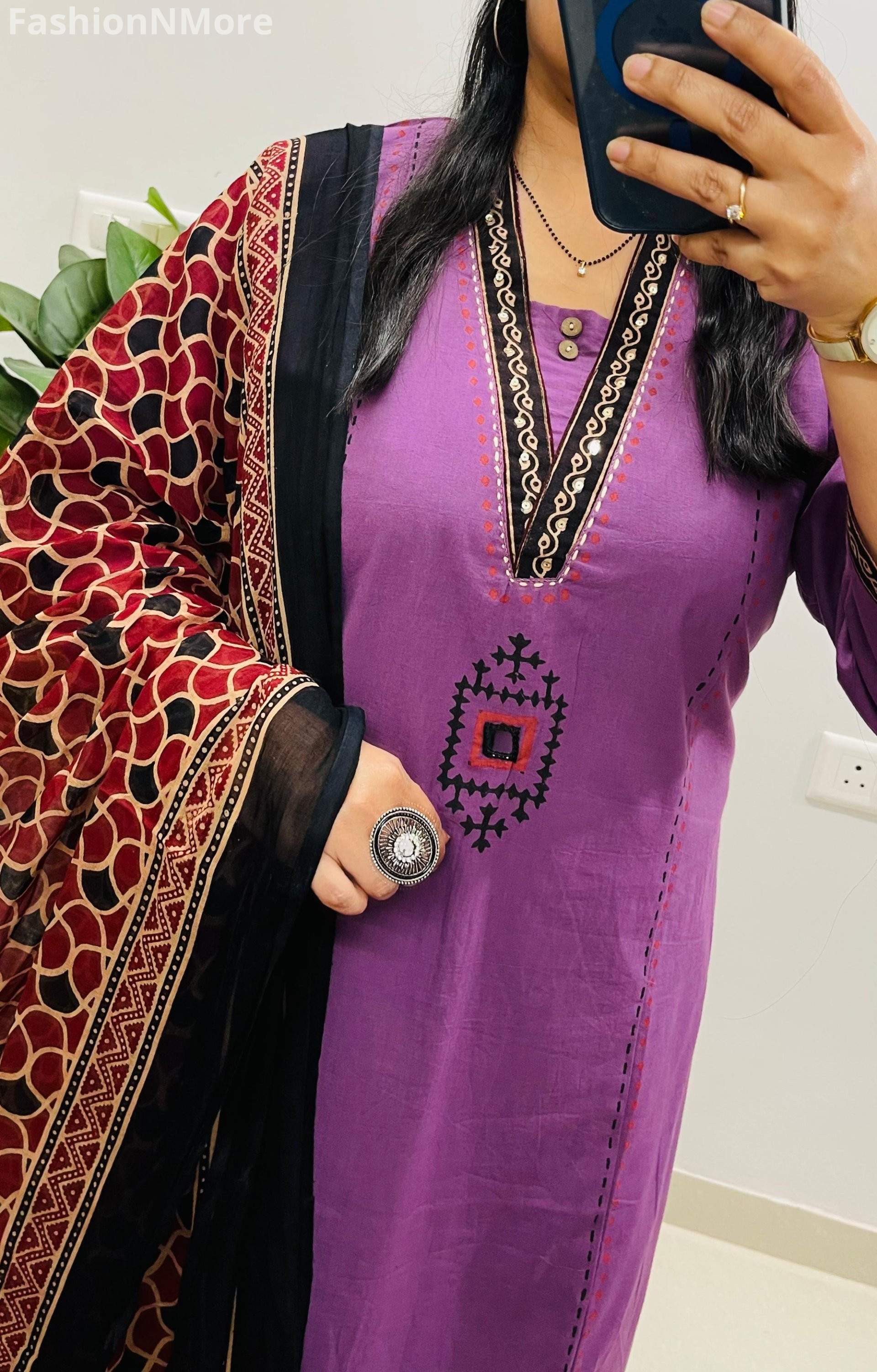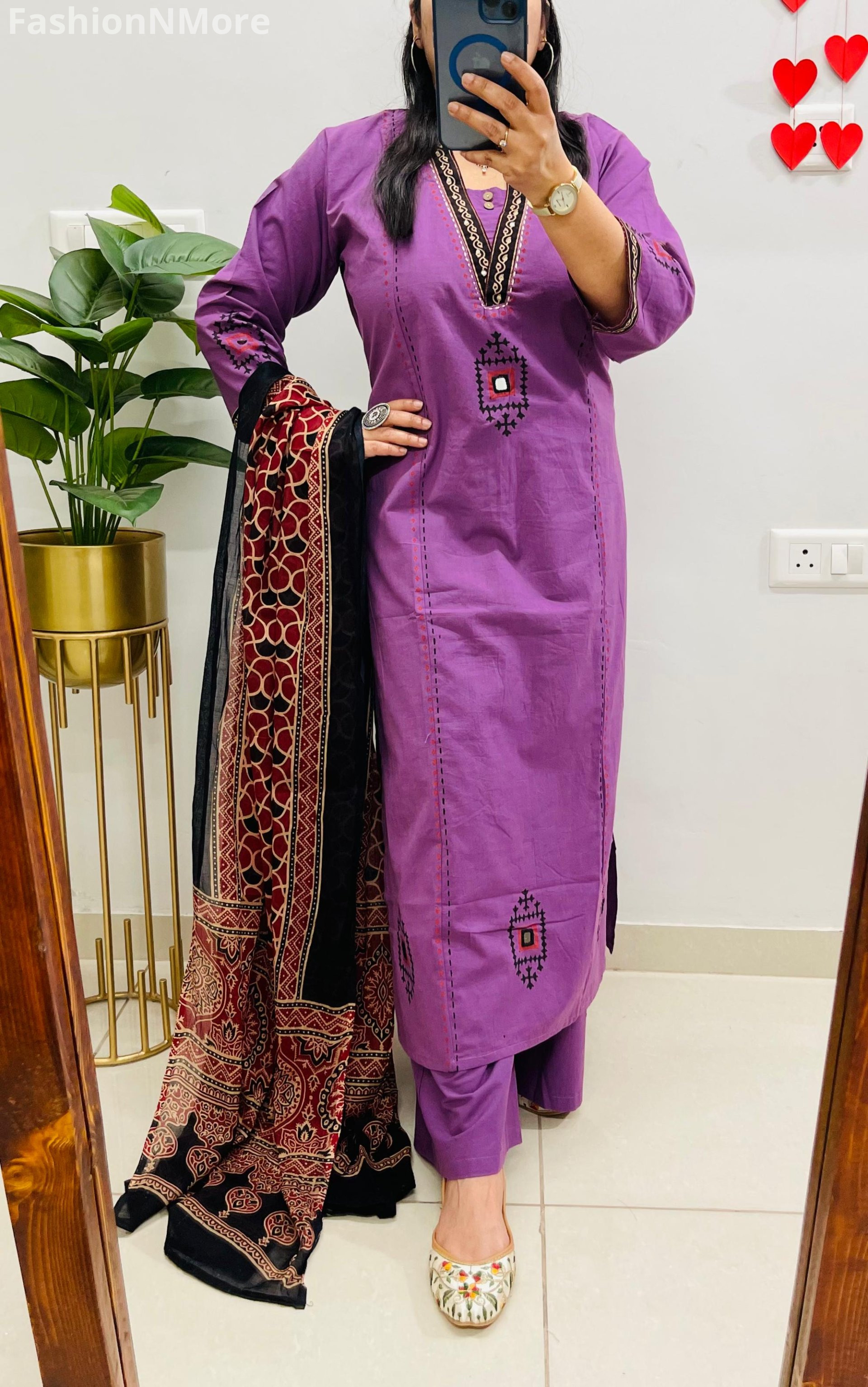 Super Premium Dhabu Cotton Kurta Pant Set with Mirror Embroidery