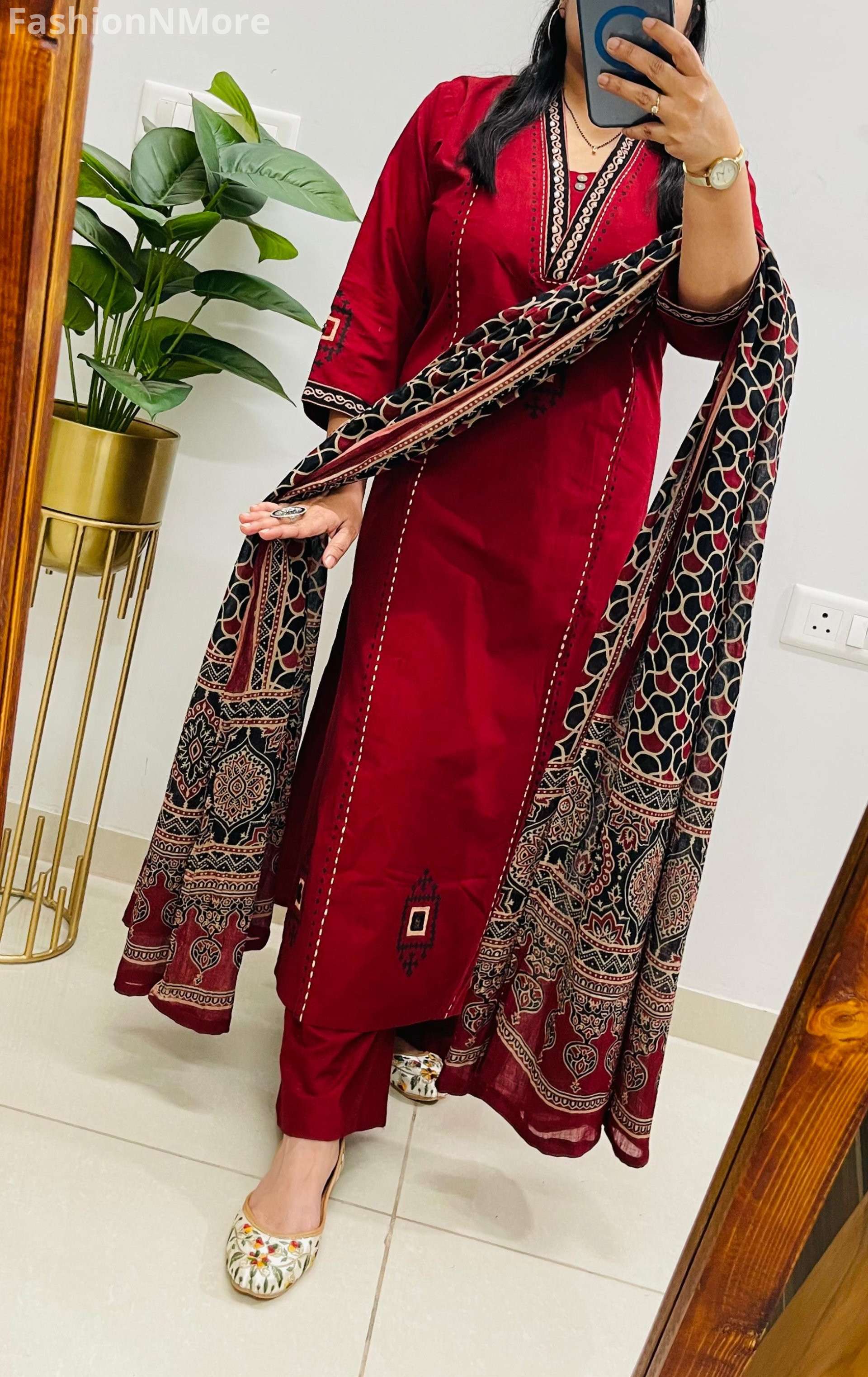 ✔ Coordinated cotton pant and matching cotton dupatta