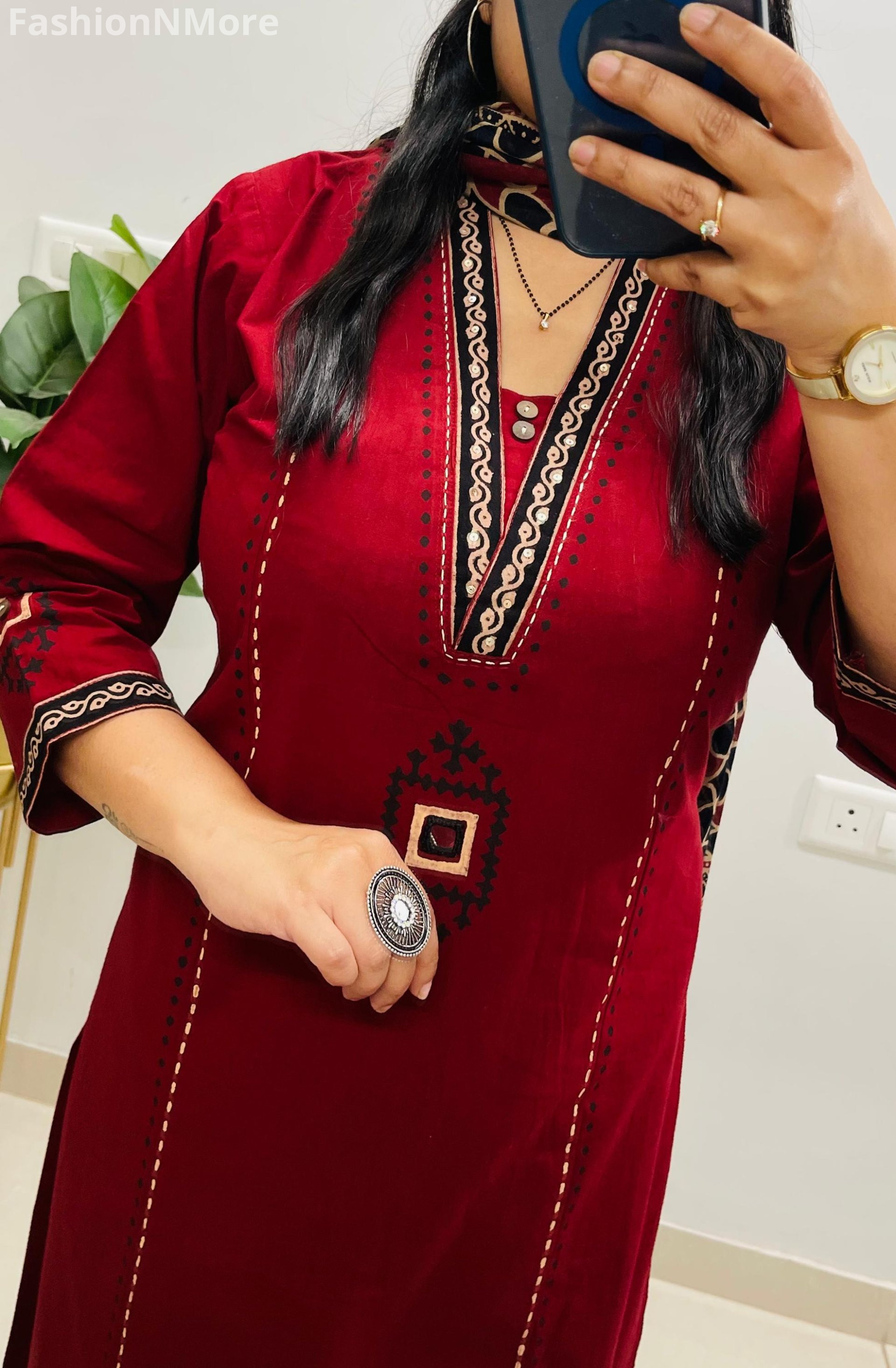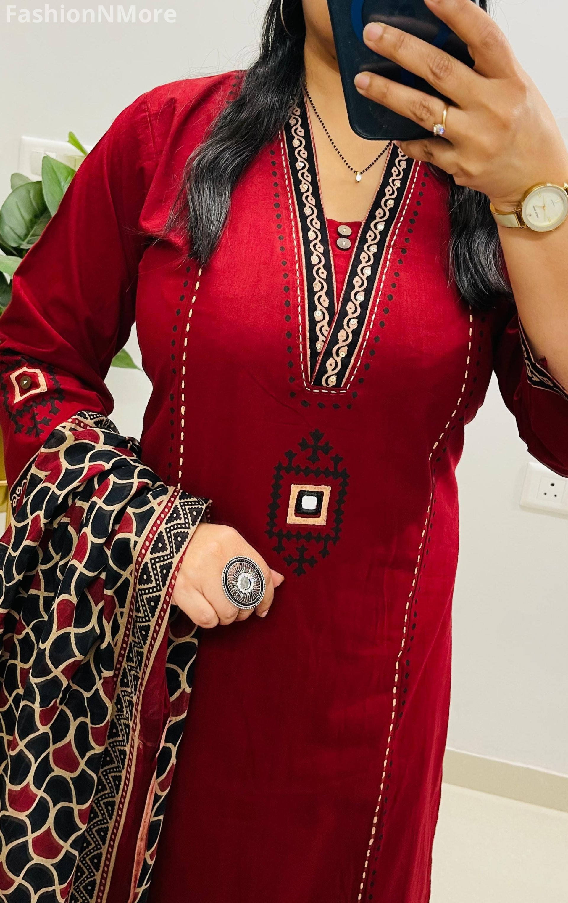 ✔ Beautiful mirror embroidery work on both front & back of the kurta