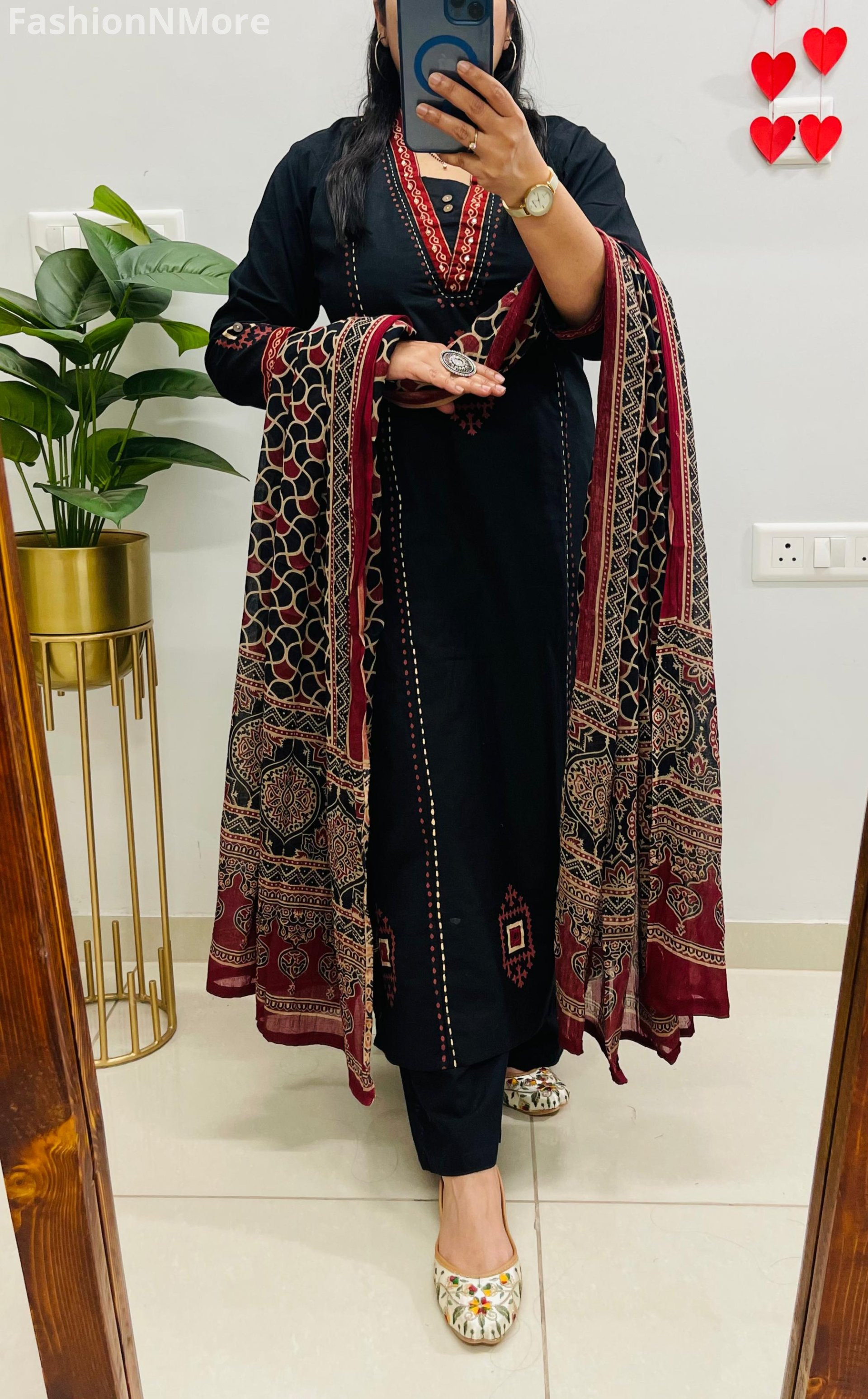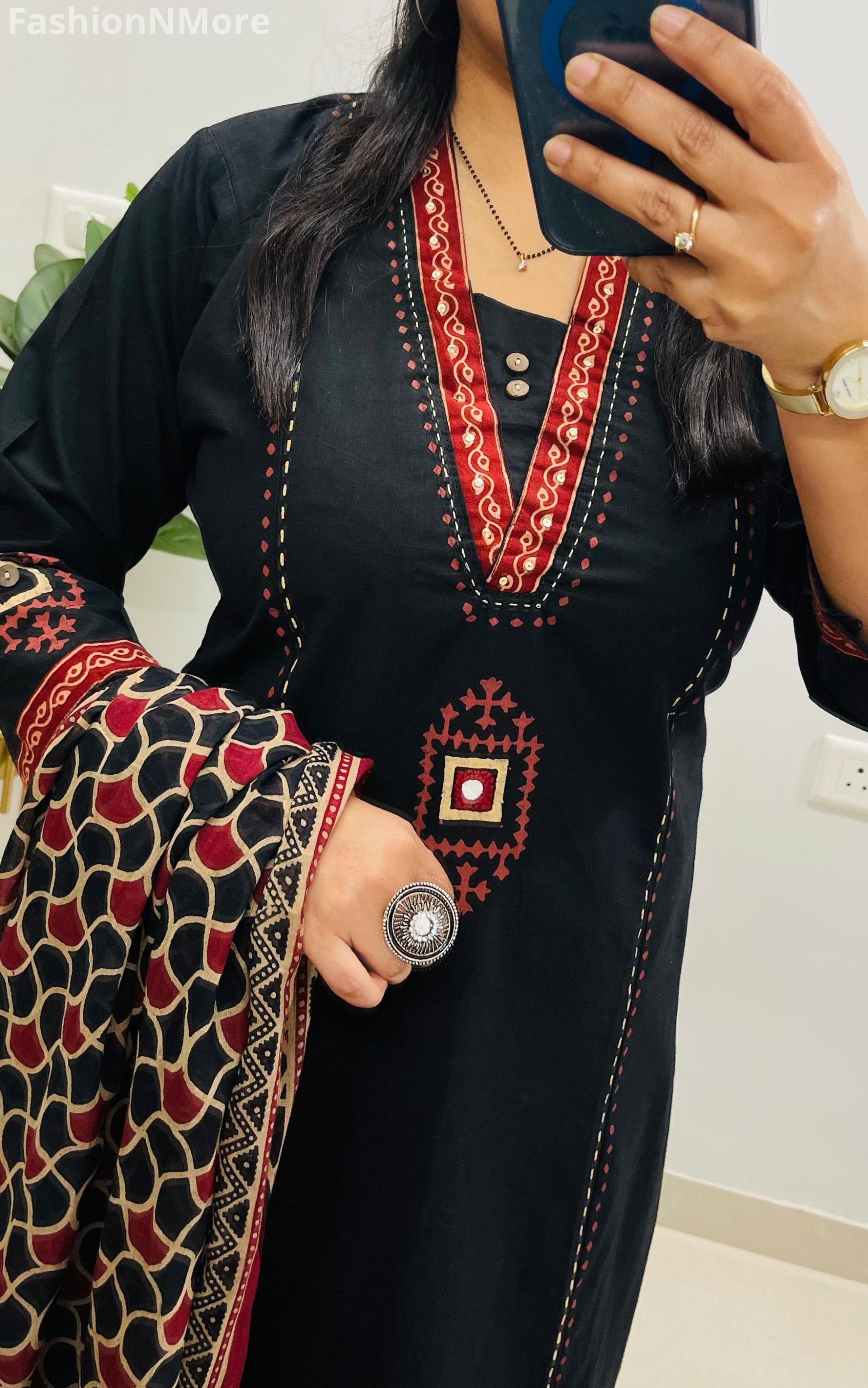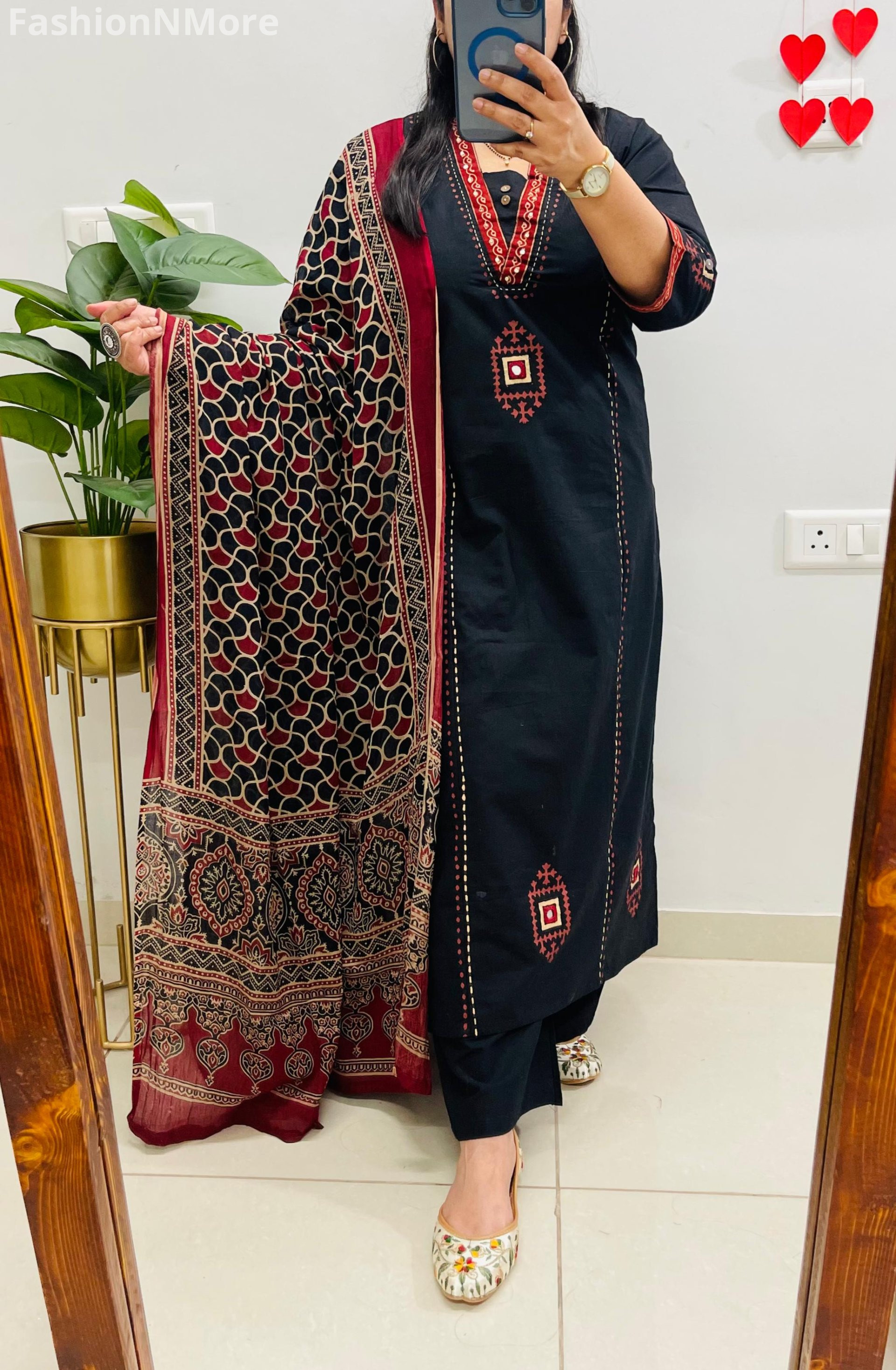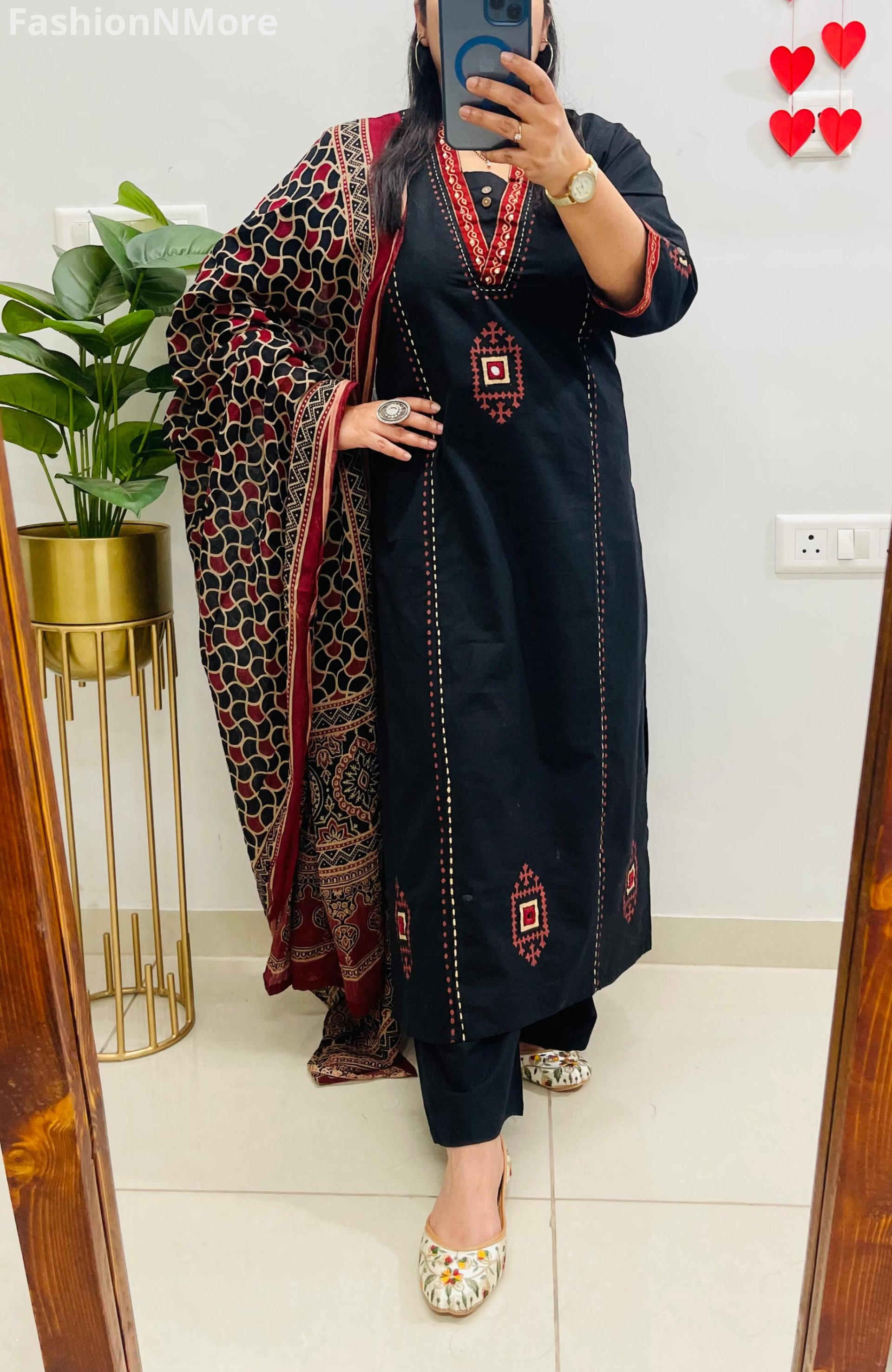 Super Premium Dhabu Cotton Kurta Pant Set with Mirror Embroidery