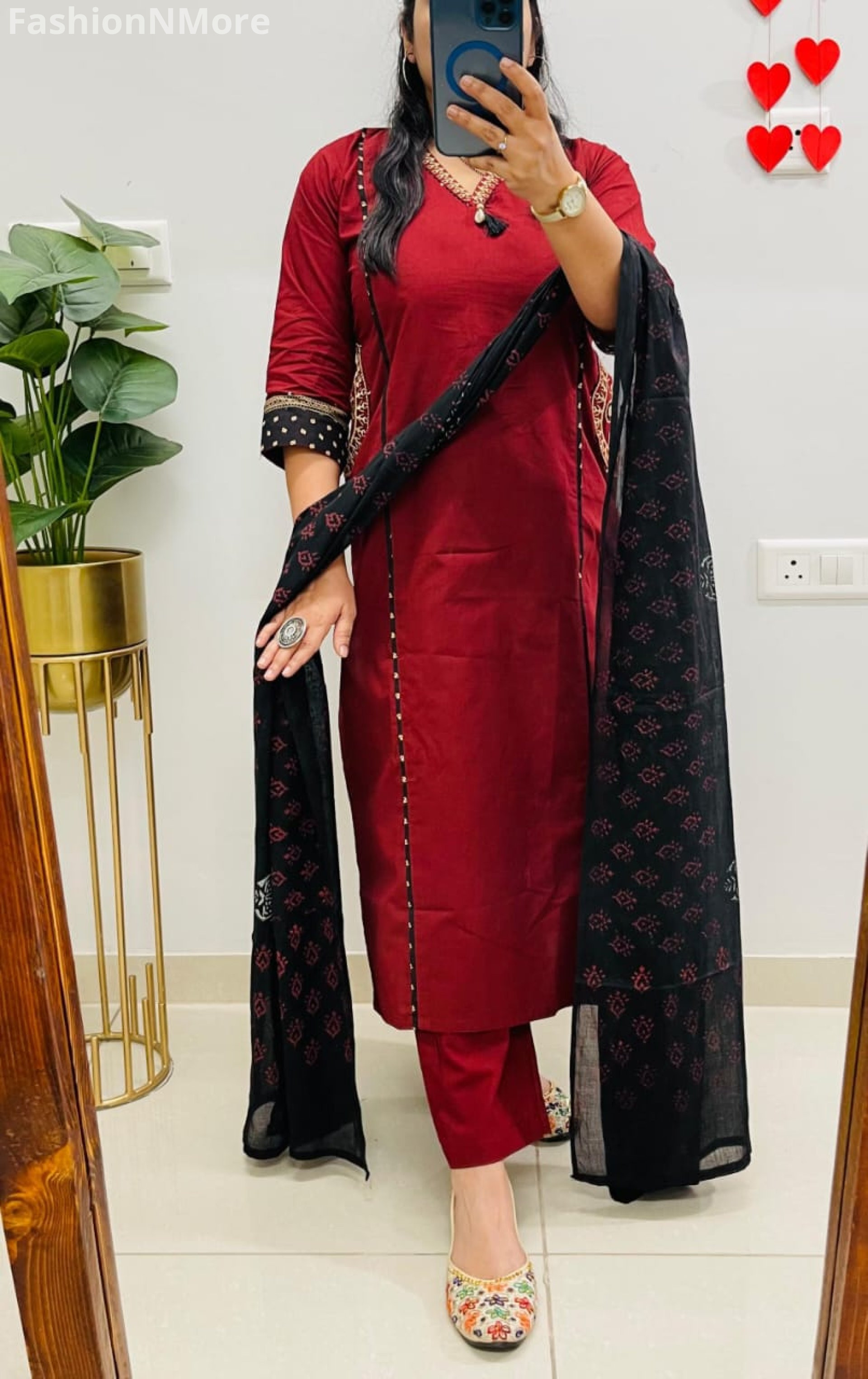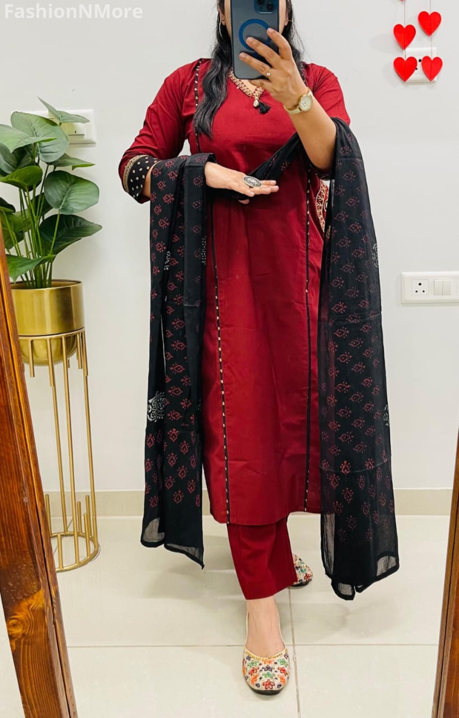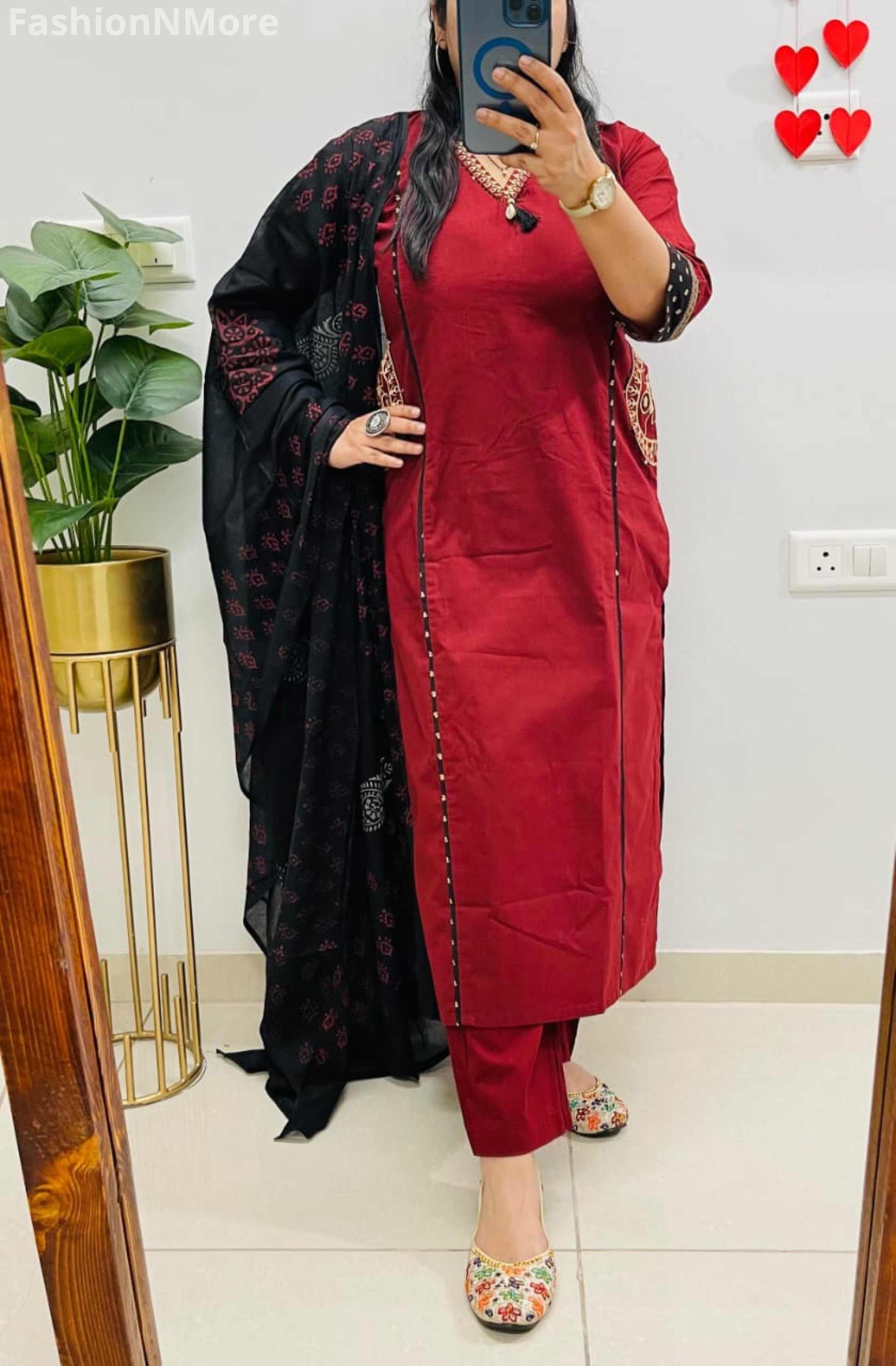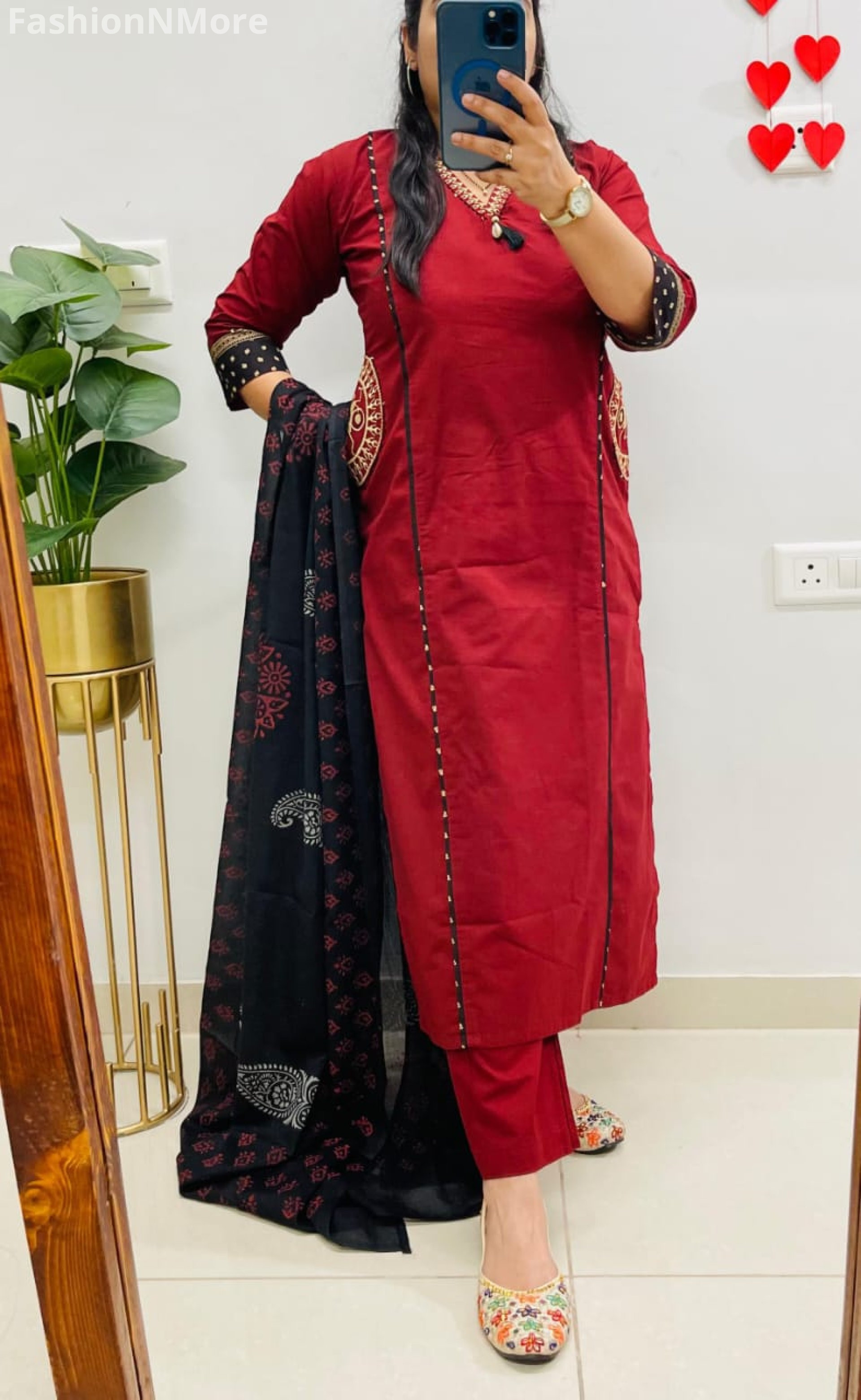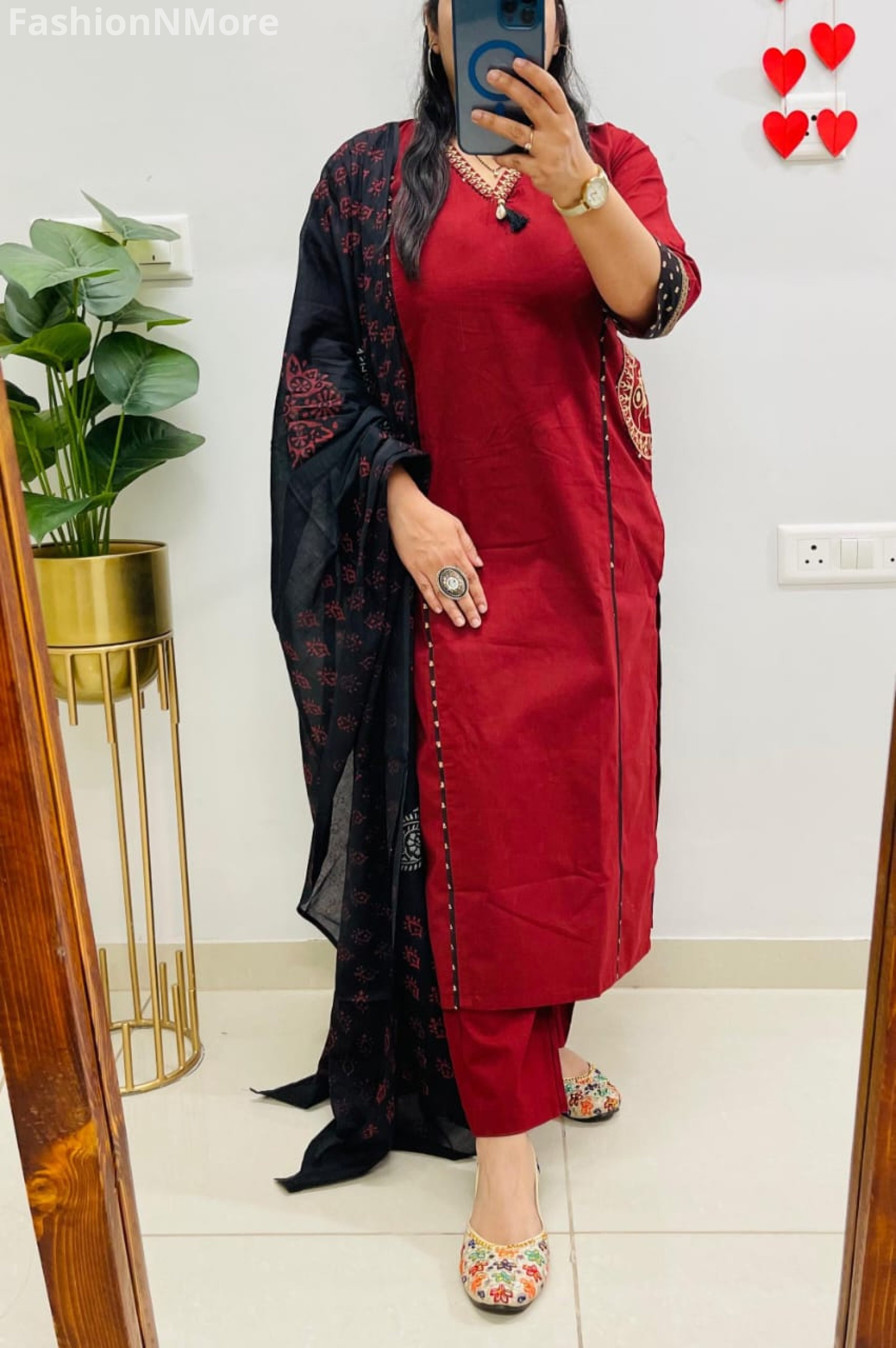 ✔️ Rich Gamthi Cotton fabric offering a soft, breathable, and premium feel