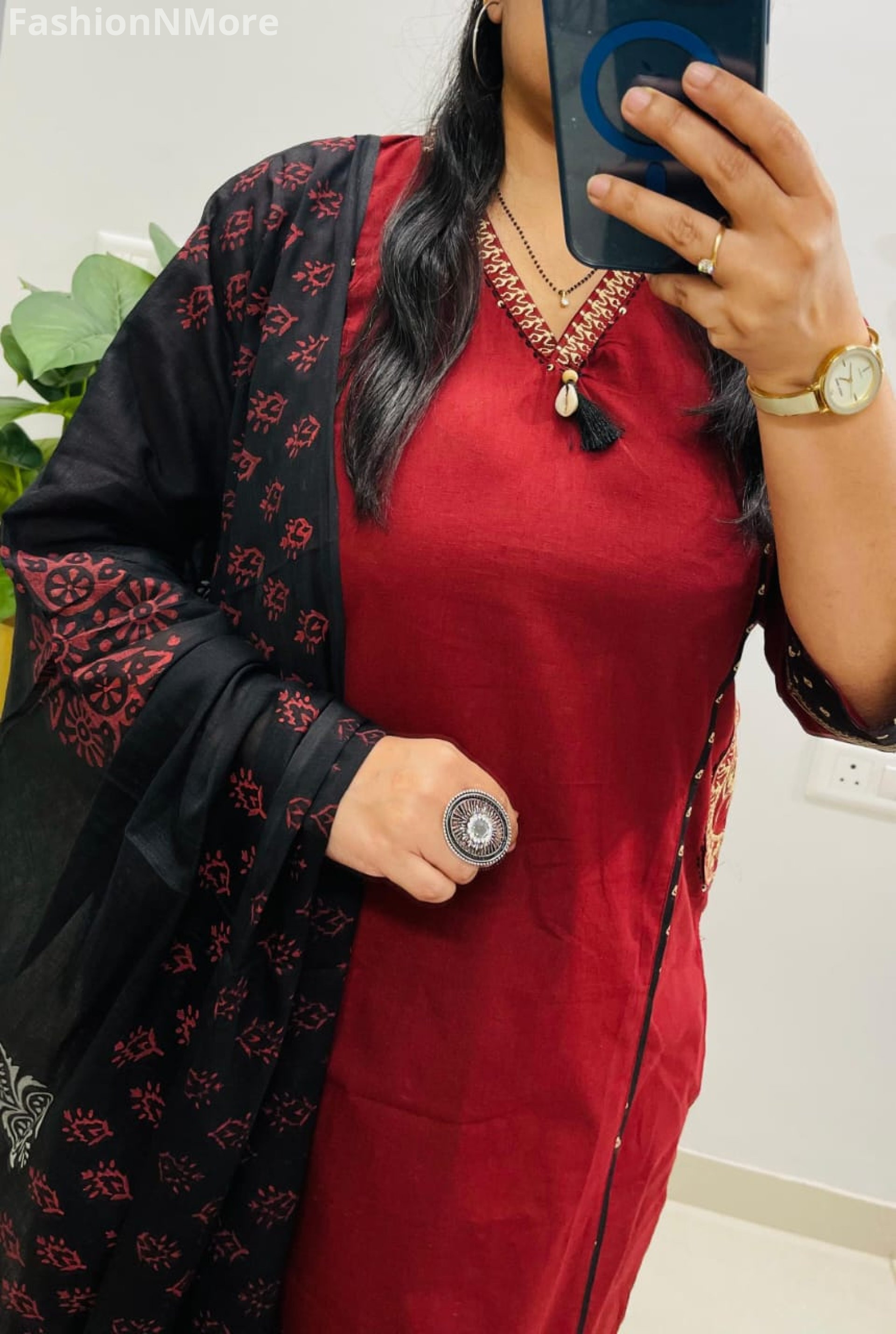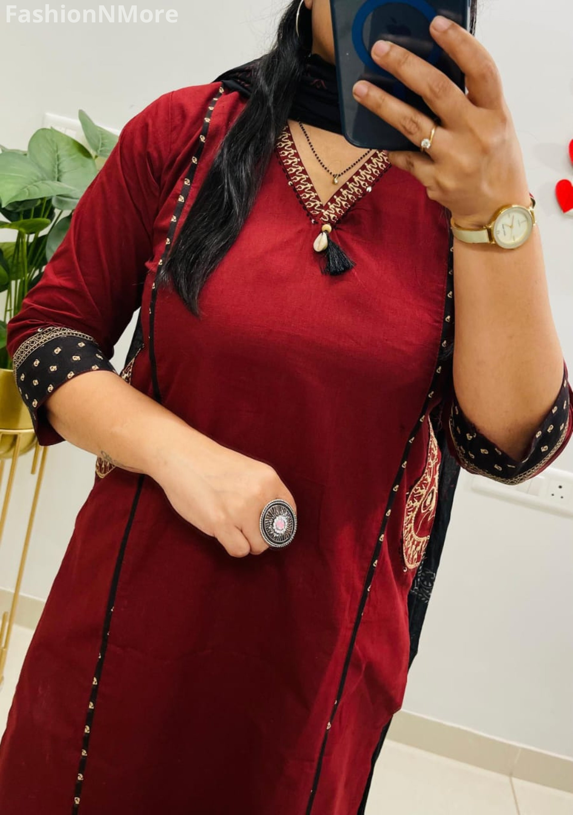 ✔️ Heavy embroidery work on yoke and both pockets adds vibrant ethnic charm
