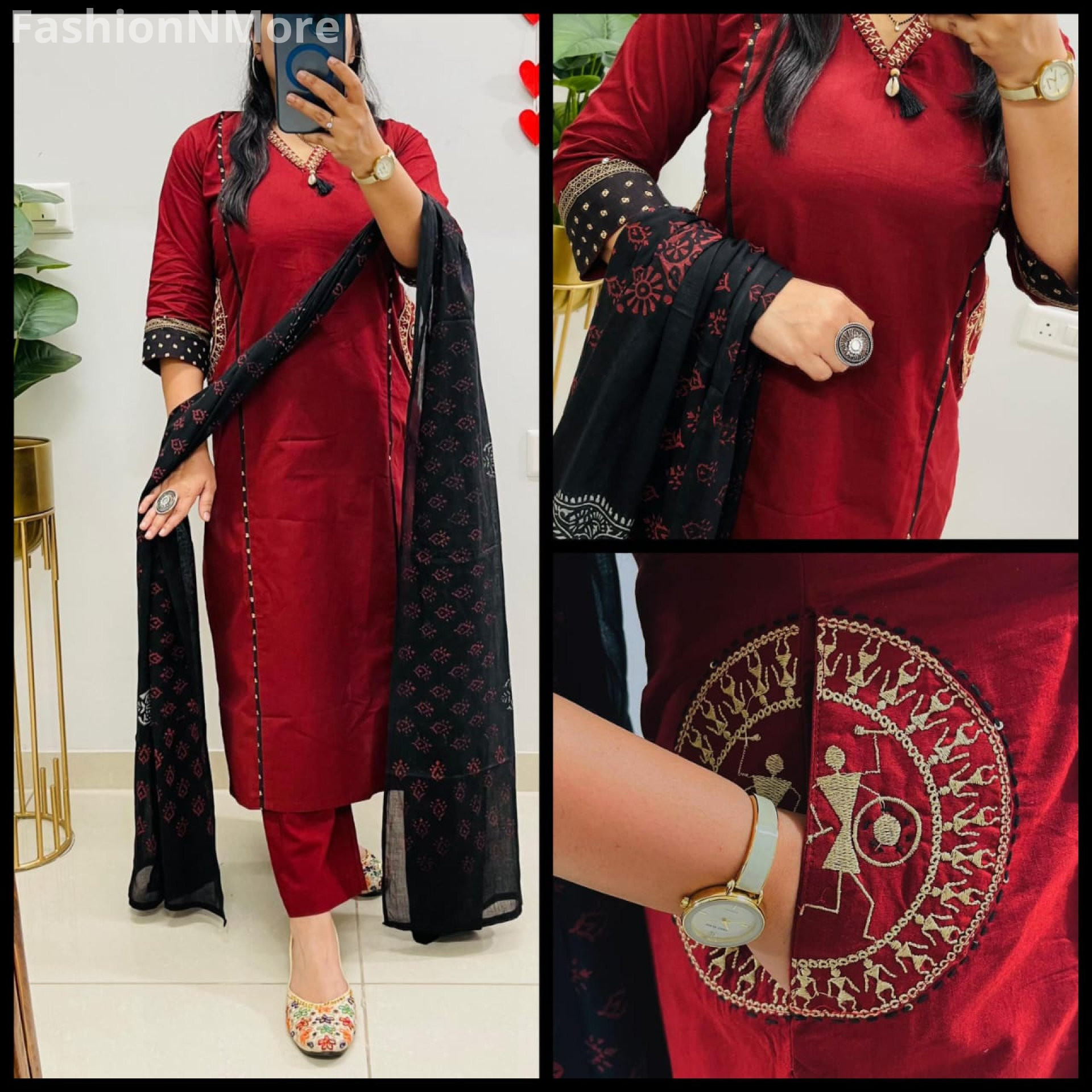 ✔️ Both-side pockets with heavy colorful embroidery — stylish yet functional