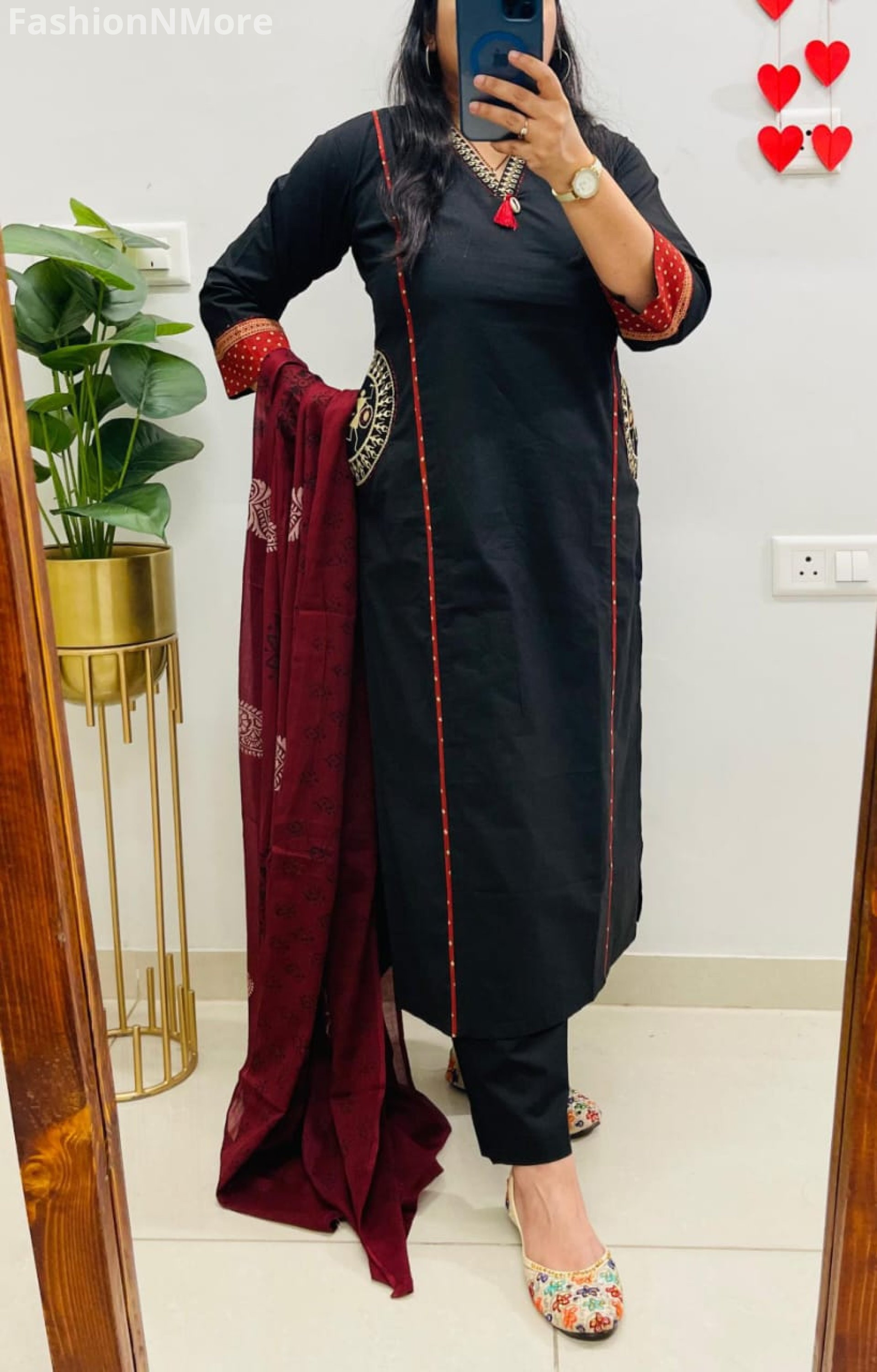 ✔️ Rich Gamthi Cotton fabric offering a soft, breathable, and premium feel