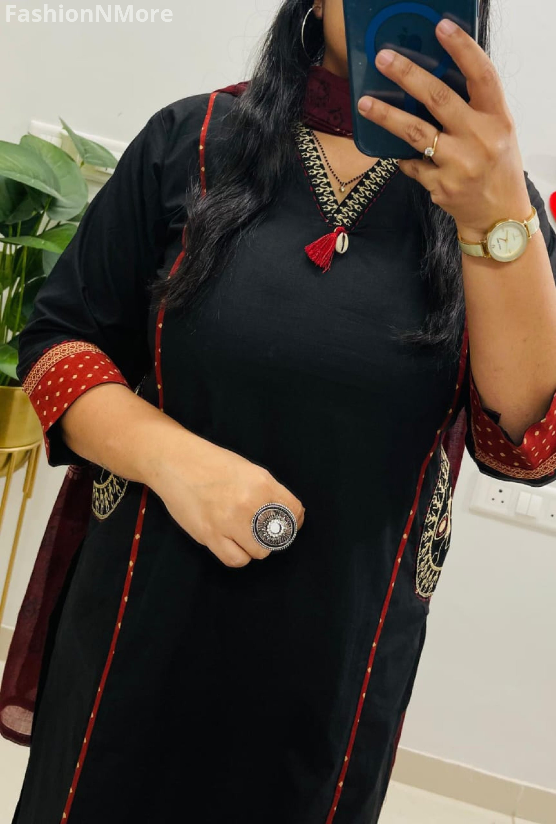 ✔️ Heavy embroidery work on yoke and both pockets adds vibrant ethnic charm